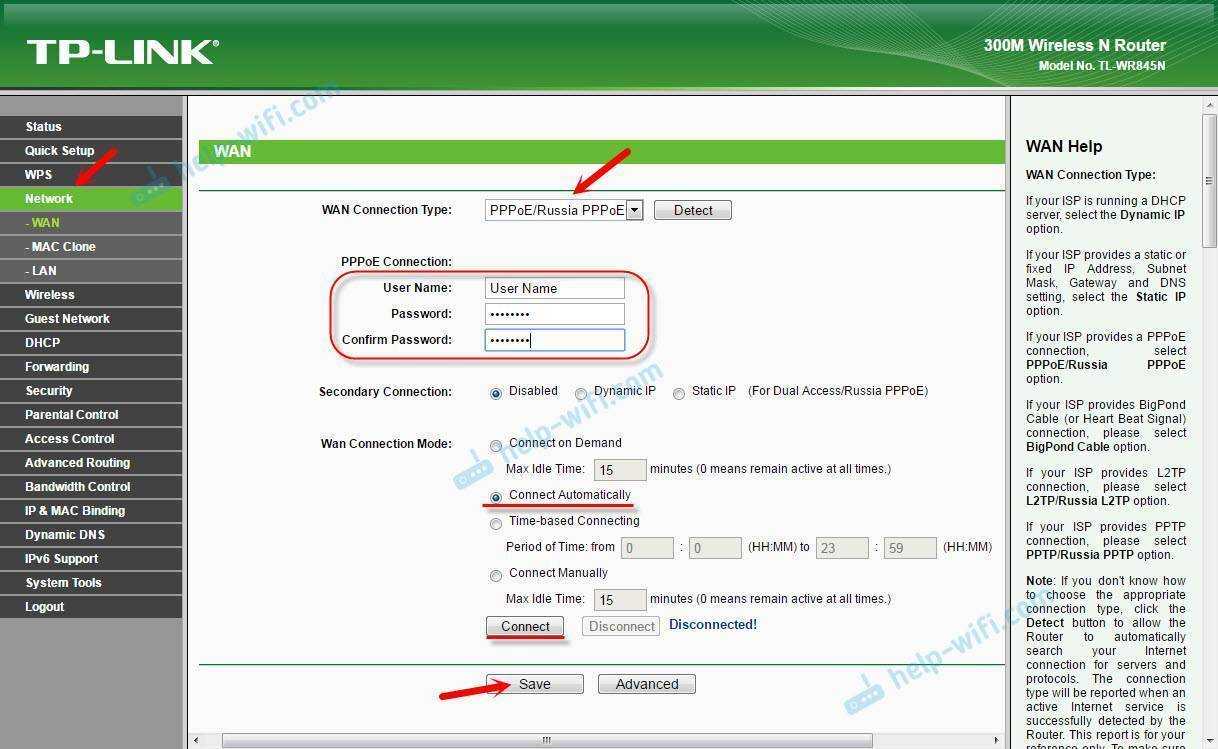- Тип WAN соединения: PPPoE / Россия PPPoE;