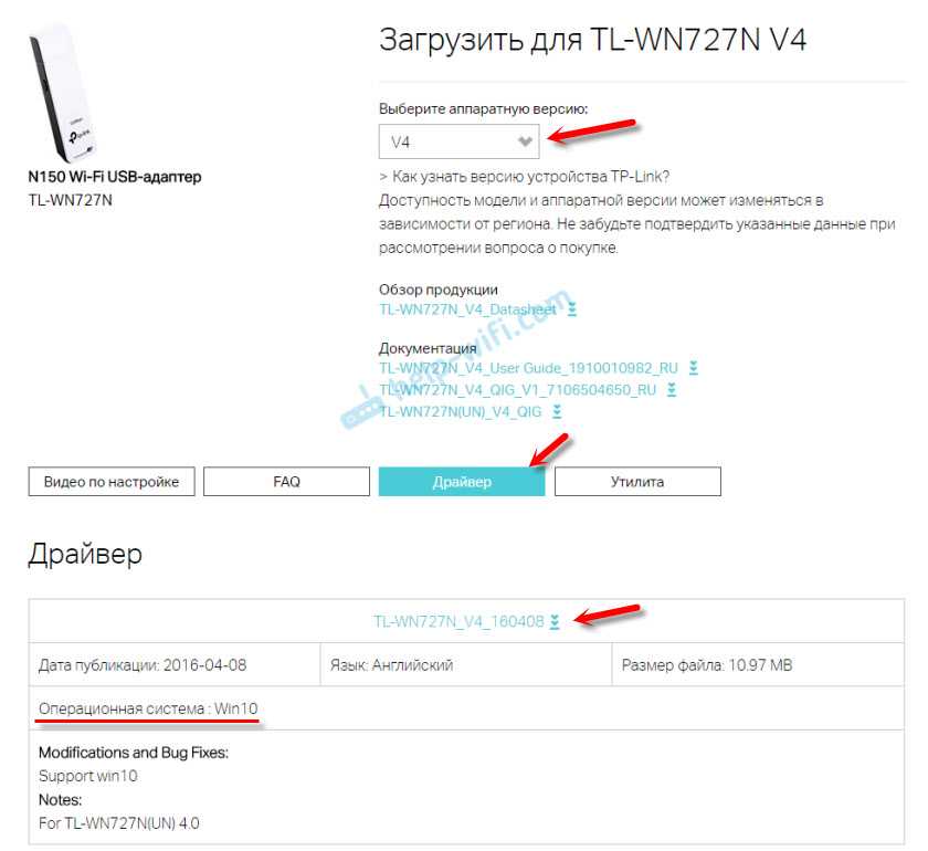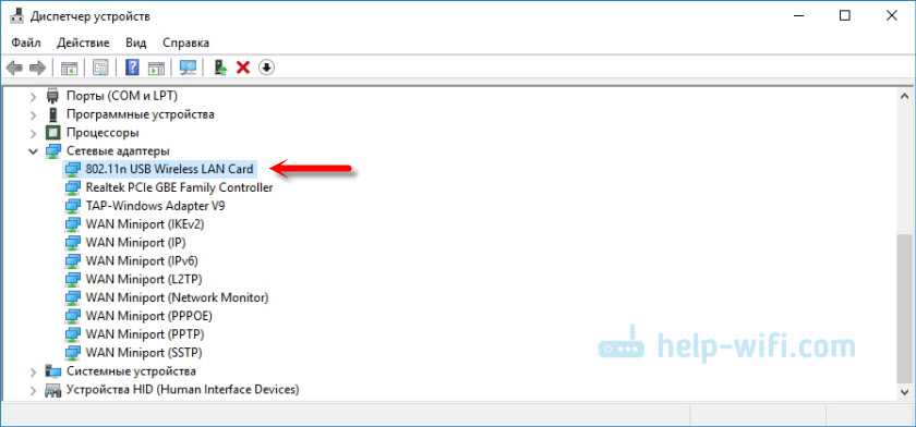 У меня на компьютере Windows 10. Адаптер 4-той аппаратной версии (V4). Система сразу определила его. В диспетчере устройств он появился как 802.11n Wireless LAN Card.