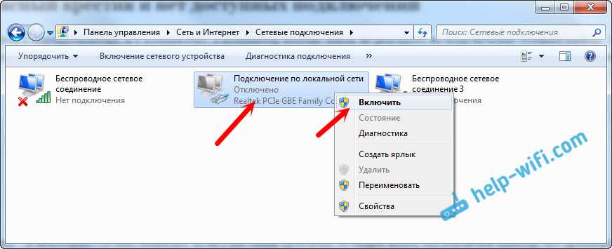 Сетевой кабель не подключен. Красный крестик и нет доступных подключений