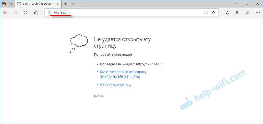 Если подключение по Wi-Fi: - Убедитесь, что адрес роутера 192.168.0.1 вы прописываете именно в адресной строке браузера. Многие делают это в строке поиска.