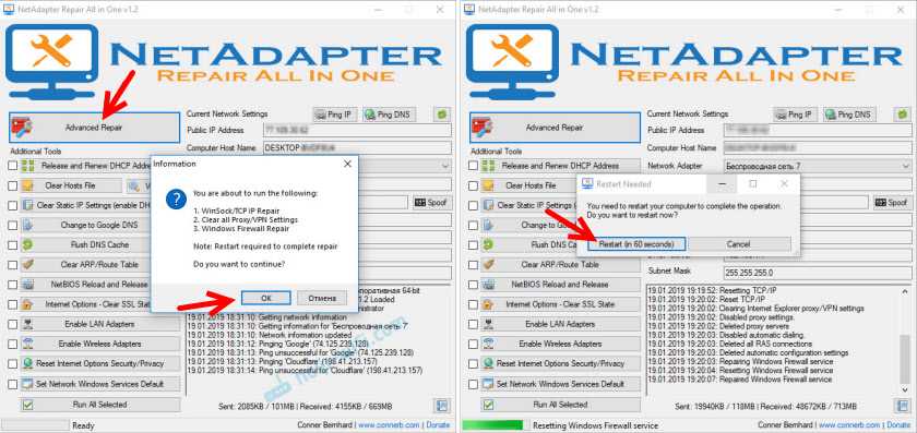 Также доступны дополнительные инструменты (Advanced Repair Tools), которые позволяют устранить неполадки, связанные с протоколом TCP/IP, сбросить настройки Proxy/VPN, а также сделать диагностику Брандмауэра Windows. Если у вас часто возникают проблемы сети, то NetAdapter Repair All in One поможет вам сэкономить много времени.