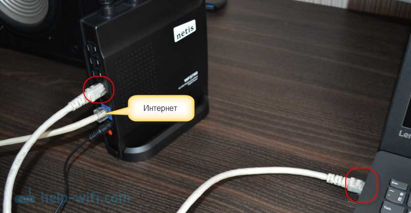 Сначала необходимо все подключить. Если у вас есть стационарный компьютер, или ноутбук (с Ethernet портом) то на момент настройки советую подключиться к Netis WF2780 с помощью сетевого кабеля. Так же в WAN порт подключите интернет (от провайдера). Подключите адаптер питания и включите его в розетку.