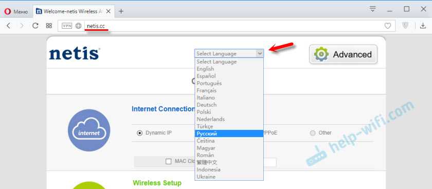 Дальше откройте любой браузер и просто перейдите по адресу http://netis.cc. Об этом я подробно писал в статье: как зайти в настройки роутера Netis.