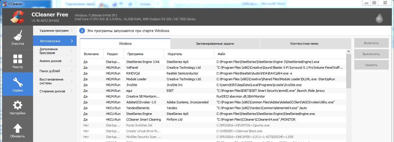 Теперь в том же пункте перейдите в пункт «Автозагрузка». И теперь нужно очень внимательно просмотреть все программы, которые загружаются вместе с системой. Выключите подозрительное ПО, которое не имеет значение в столбце «Издатель». Также стоит отключить не нужные сервисы, которые просто будут грузить систему.