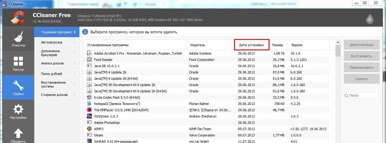 В следующей вкладке «Сервис» в разделе «Удаление программ» установите список по дате установки. Проверьте не устанавливали ли вы какие-то подозрительные программы и софт, которые в теории могут тормозить работу интернета. Возможно есть программы, которые били установлены без вашего ведома – например забыли убрать галочку при установки какой-то штатной программы. Удалите все лишнее.