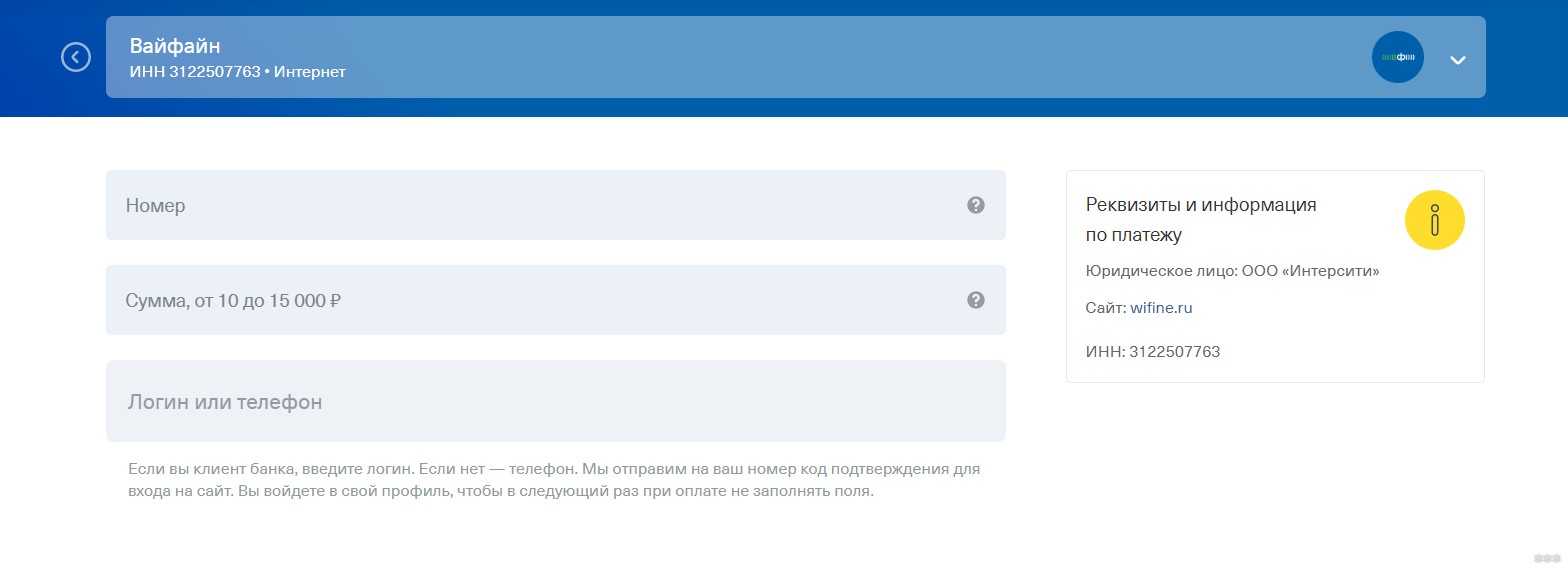 Подобное существует и у других банков. Вот на примере Тинькофф оплата некоего WIFINE: