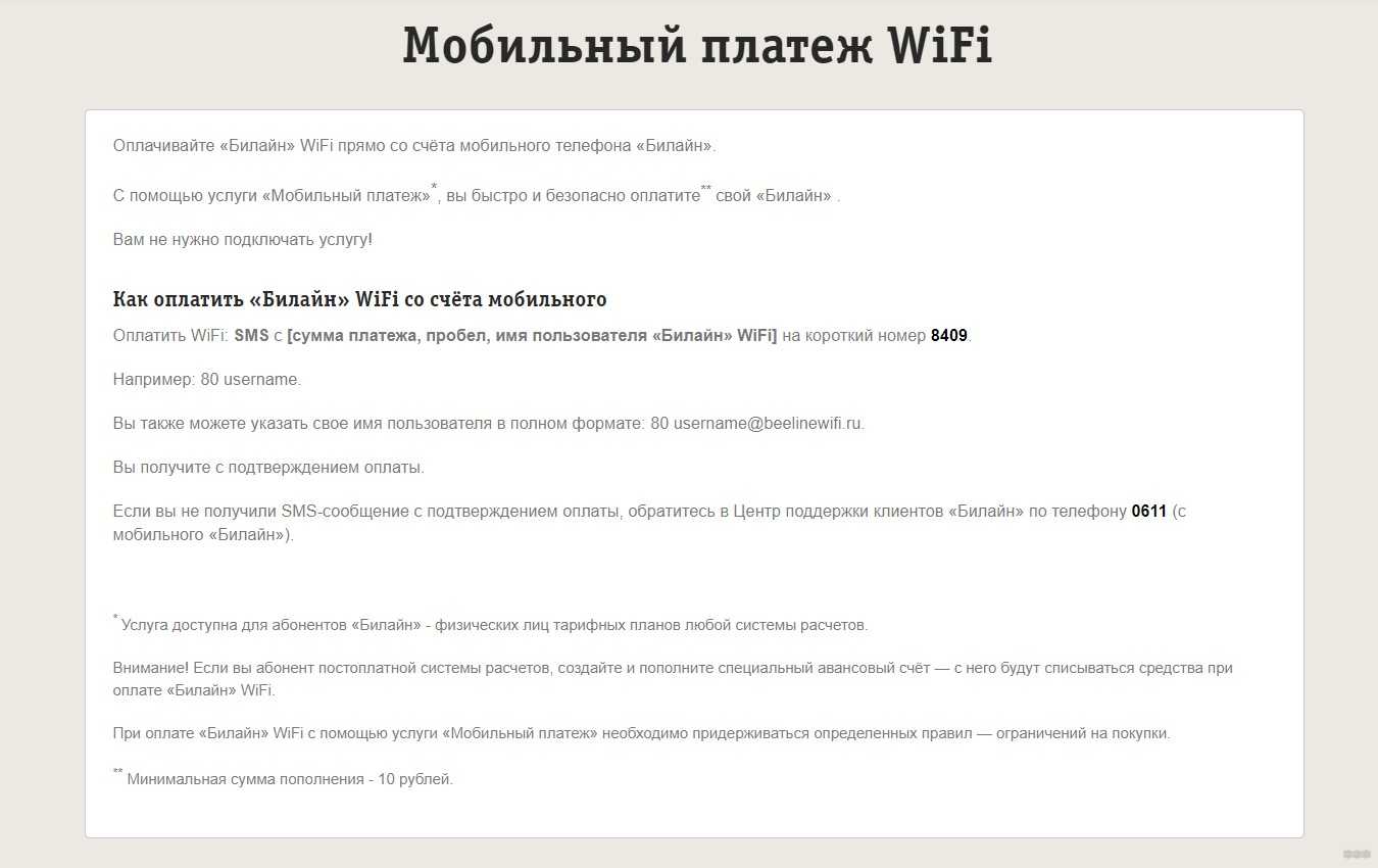 Страницу выбрал неслучайно. На самом деле возможностей оплатить у каждого провайдера обычно несколько. Но именно здесь представлена вся информация по мобильному платежу, который, к слову, есть у многих провайдеров и банков: