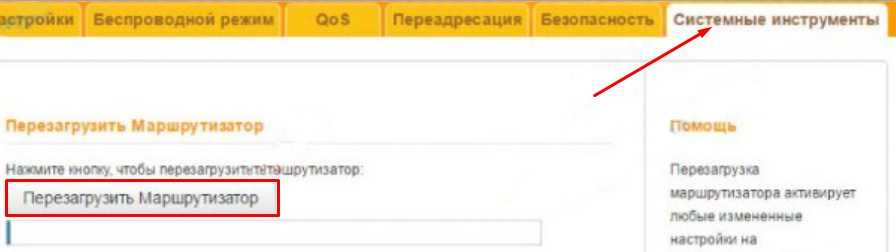 Это нужно, для того чтобы некоторые настройки вступили в силу. Для этого переходим в самую правую вкладку «Системные инструменты» и жмём на кнопку «ребута».