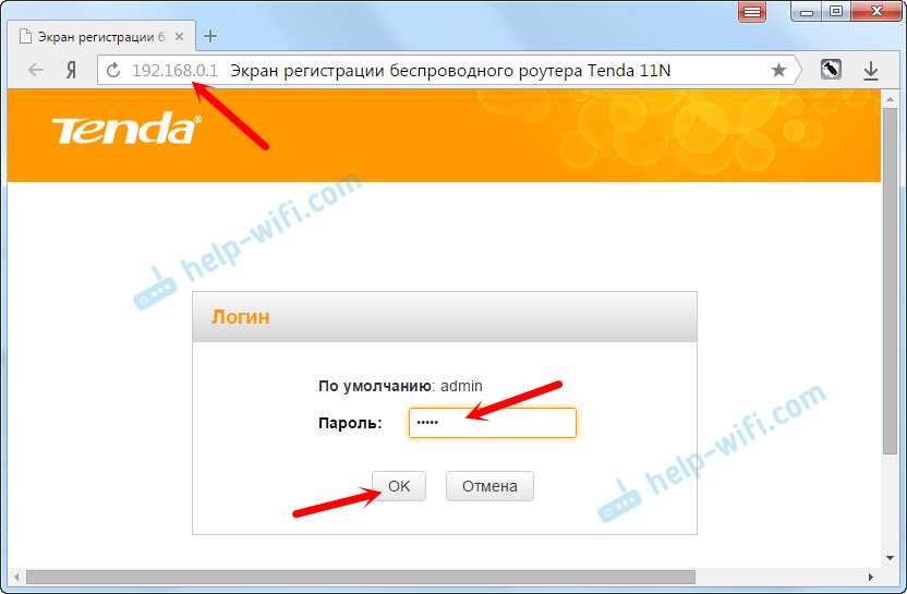 Как и на роутерах многих других марок, веб-интерфейс Tenda использует по умолчанию адрес 192.168.0.1 и слово «admin» в качестве логина и пароля. Введите эти данные в вашем браузере.