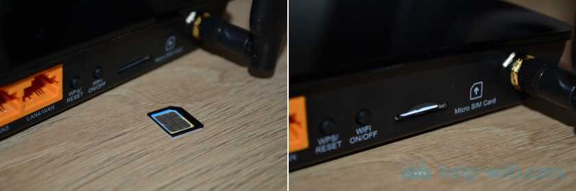 Для подключения сотовой сети нужна SIM-карта: разъем для нее расположен на задней панели маршрутизатора. В комплекте идет SIM-адаптер для nanoSIM и microSIM.