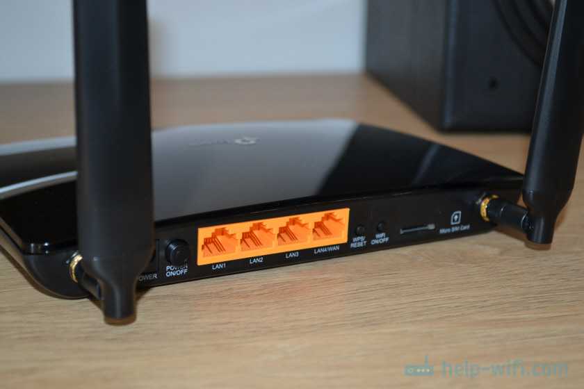 На задней части корпуса размещены сетевые порты и огромное количество всевозможных кнопок для управления теми или иными функциями. Из разъемов доступны 4 LAN порта, один из которых при переводы в классический режим кабельного wifi роутера можно задействовать в качестве WAN для подключения шнура интернета. К сожалению, в TP-Link Archer MR200 все порты поддерживают скорость только до 100 мбит/c. Этого вполне достаточно сегодня для комфортной работы в интернете, с учетом основного назначения данного роутера в виде работы в качестве 4G-LTE модема. Но может стать ограничением при необходимости повысить производительности локальной сети.