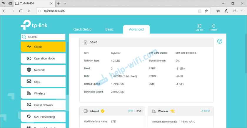 Веб-интерфейс TP-Link TL-MR150 доступен по адресу tplinkmodem.net. На этой модели установлен новый и современный веб-интерфейс. Выглядит он вот так: