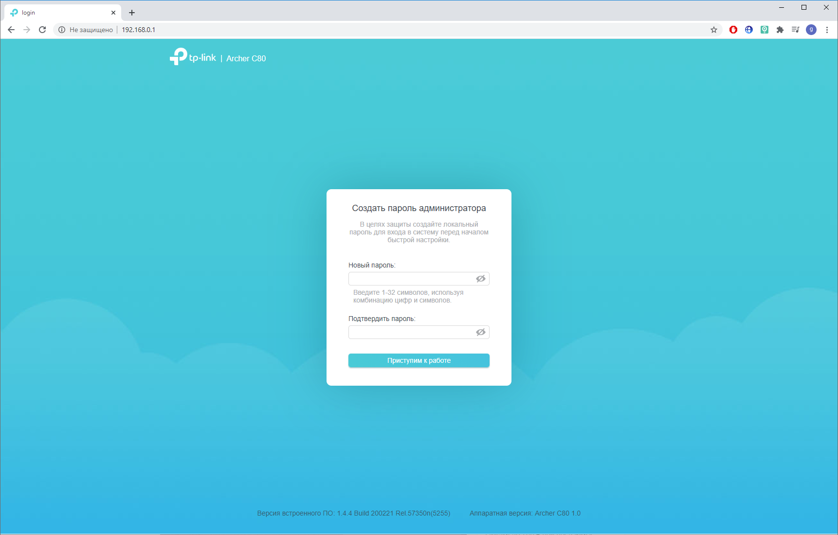 Первое подключение начинается с авторизации и задания нового пароля. В случае его утраты стоит лишь произвести сброс настроек и перенастроить роутер заново.