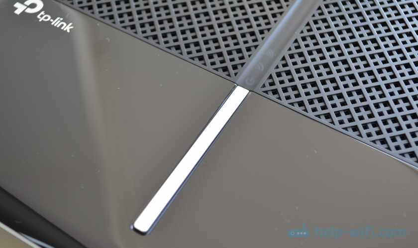 Практически весь корпус выполнен из качественного матового пластика. Верхняя крышка разделена на две части. Первая сделана из матового пластика с необычной текстурой и отверстиями для вентиляции, а вторая из глянцевого пластика (который понятное дело очень пачкается и царапается). Есть вставки из серебристого пластика, которые отлично дополняет логотип компании TP-Link такого же цвета. Индикаторы находятся сверху и выделены специальной полоской. Их можно увидеть только тогда, когда TP-Link Archer C2300 включен. Нижняя часть серебристой полоски – это кнопка для отключения индикаторов. Но я не очень понял для чего нужна эта кнопка, ведь индикаторы светят очень тускло даже в темноте.