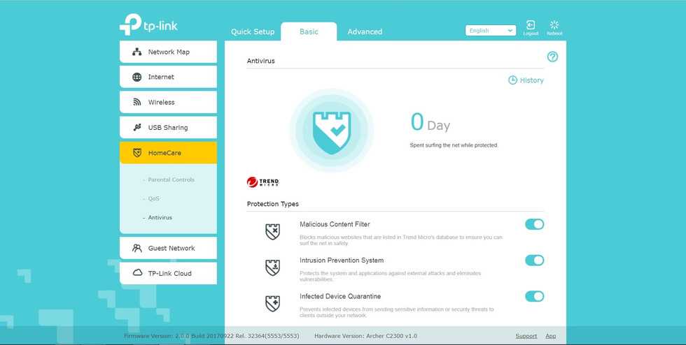 Нет необходимости покупать внешние межсетевые экраны, такие как Cujo или Circle, чтобы защитить свою сеть. TP‑Link HomeCare TM работает на базе Trend Micro TM * и включает в себя антивирус, функцию родительского контроля и приоритизации данных (QoS).