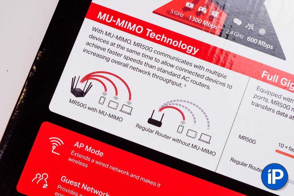 При вещании в диапазоне 5 ГГц MR50G ведет себя аналогично, обеспечивая в прямой видимости на расстоянии в 6-9 метров предельные скорости.