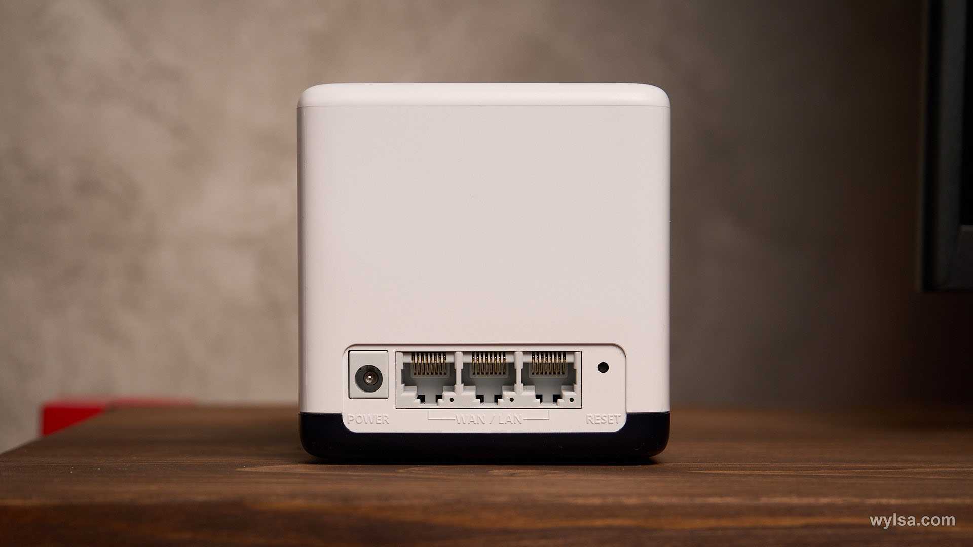 На обратной стороне каждого куба четыре разъёма: один для питания, три — универсальные Ethernet для WAN или LAN. Также здесь находится кнопка сброса.