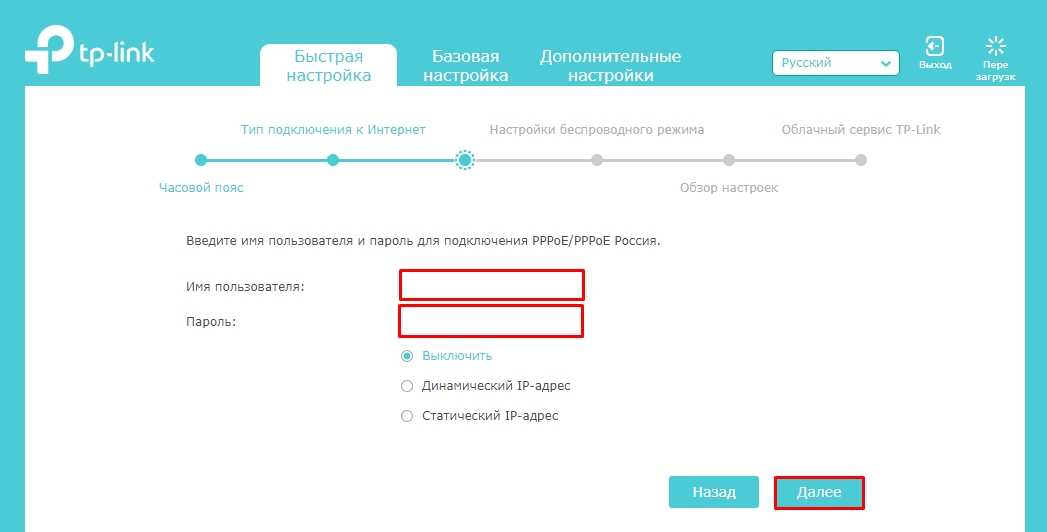 - В зависимости от типа подключения вам нужно будет ввести дополнительную информацию.