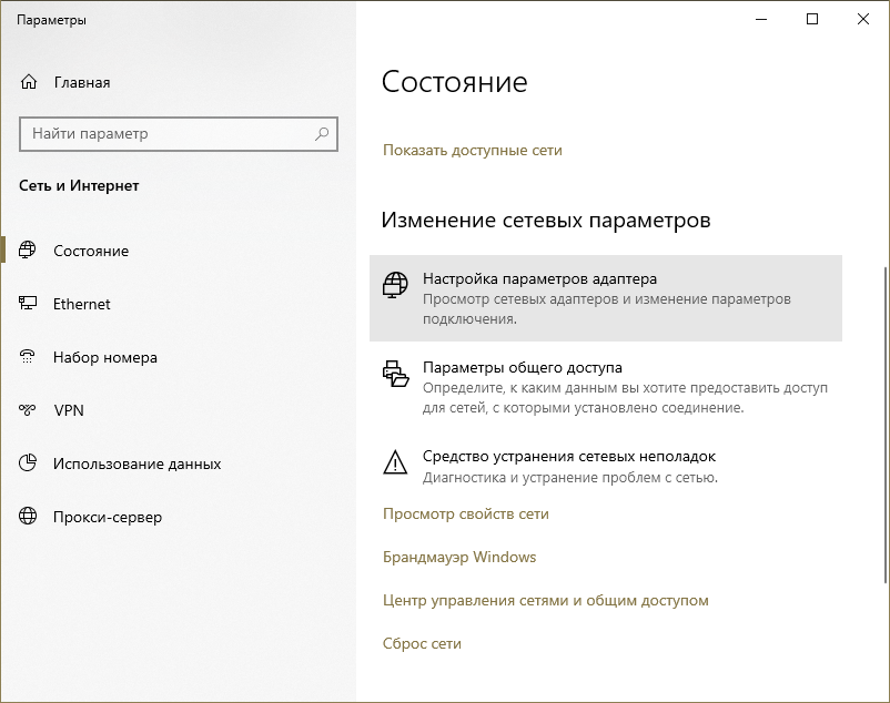 Перейдите в раздел «Сеть и Интернет», а затем – «Состояние».