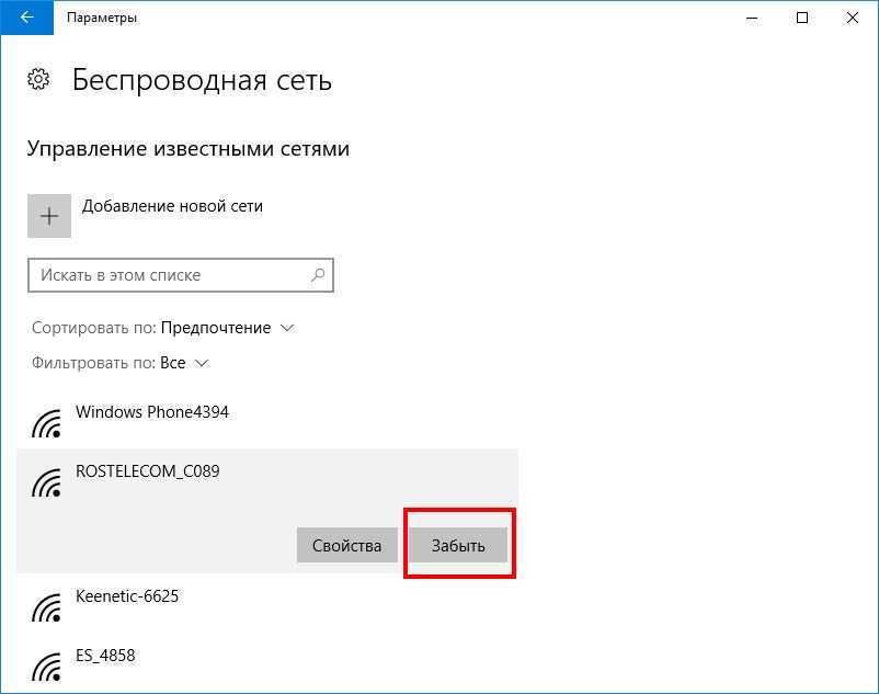 В новых версиях операционной системы присутствует возможность «забыть» пароль. Для этого требуется нажать на ее название в списке сетей, а затем выбрать в контекстном меню соответствующий пункт.