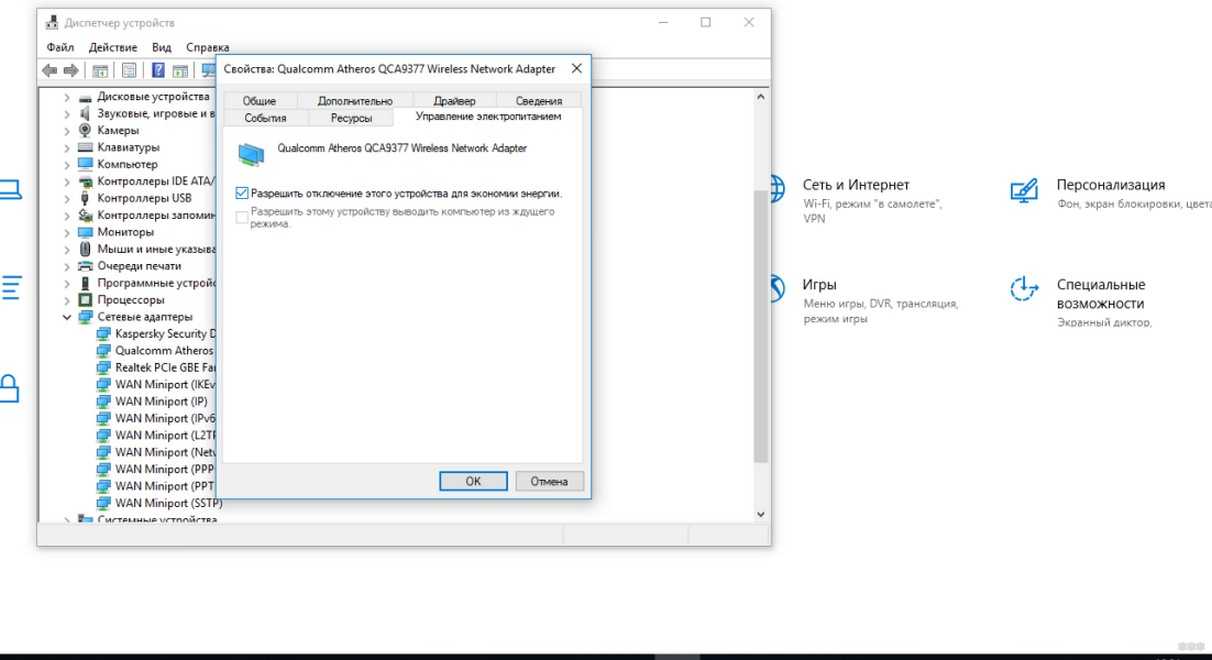 Сразу советую запретить отключение питания для Wi-Fi адаптера. Чтобы не пропадал Wi-Fi.