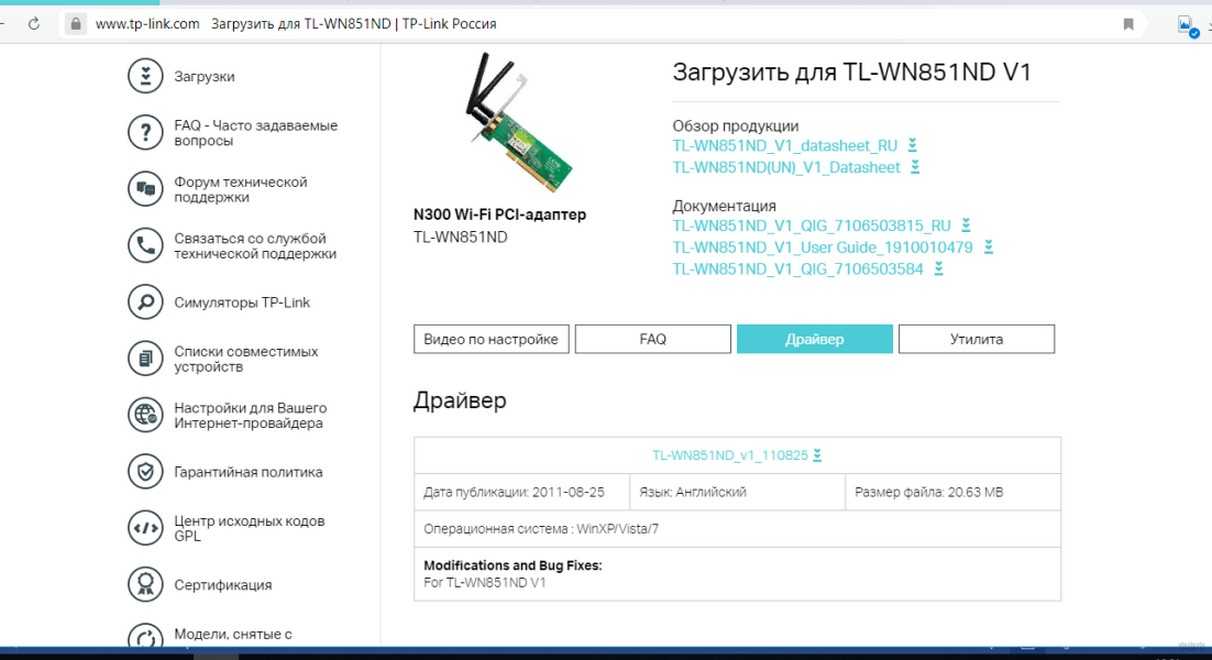 Установка драйвера Wi-Fi адаптера TP-Link TL-WN851ND