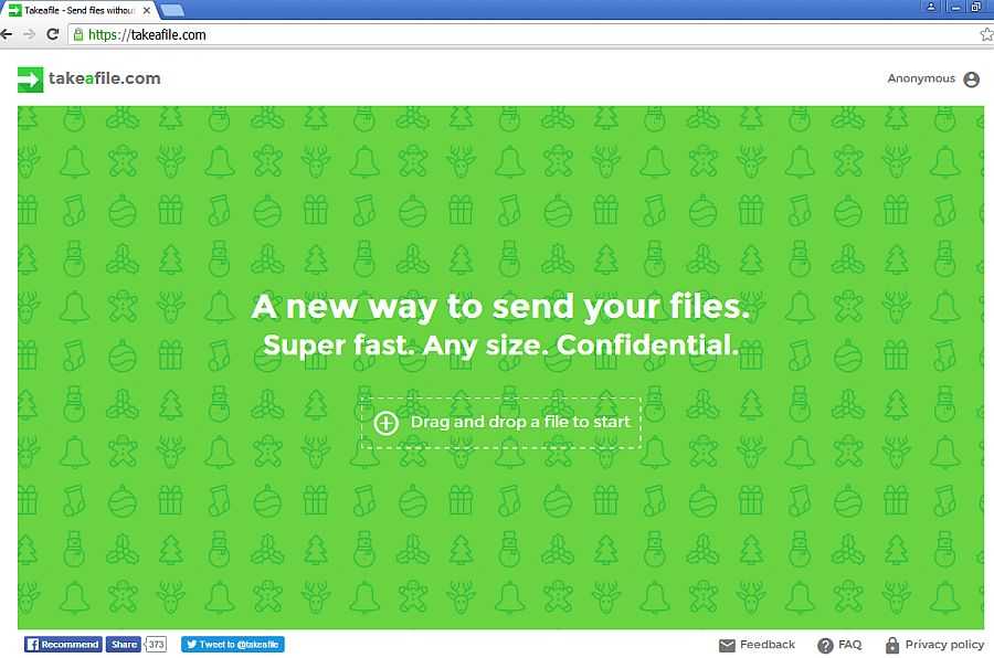 Рассмотренный сервис WeTransfer хранит данные на своем сервере, с которого потом ваш знакомый может их скачать. Конечно, они будут удалены через неделю, но если хотите сохранить конфиденциальность ваших данных, то следует воспользоваться решением, которое не требует участия «третьих лиц». Таким решением является сервис Takeafile, который позволяет пересылать большие объемы информации непосредственно с одного компьютера на другой с помощью технологии сети P2P, используя тот самый браузер. Кроме того, если вы ищите ответ на вопрос, как быстро передать большой файл с компьютера на компьютер, то этот сервис как раз то что нужно.