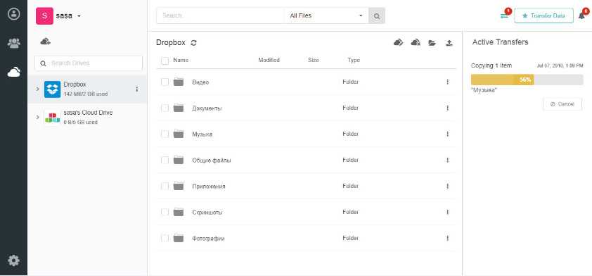 Работать с Otixo так же легко, как и с Проводником Windows, например, чтобы скопировать файлы с одного облака в другое, достаточно перетащить их в соответствующую папку на панели переходов. Есть десктопные и мобильные клиенты, среди недостатков – ограничения на размер загружаемых в «родное» облако файлов.