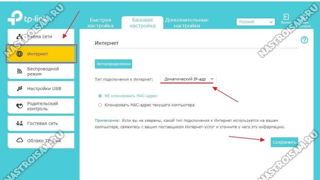 В случае с Динамическим IP кроме выбора подключения обычно больше ничего делать не нужно. Сохраняем настройки и проверяем.