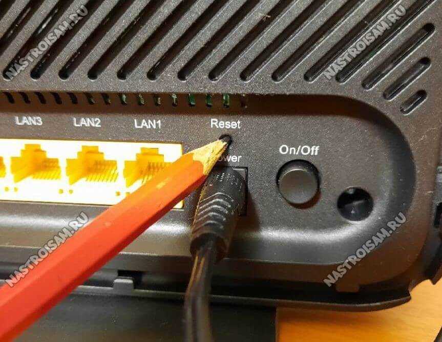 В этом случае надо попробовать его перезагрузить. Если не поможет — тогда сделать аппаратный сброс настроек роутера с помощью кнопки Reset.