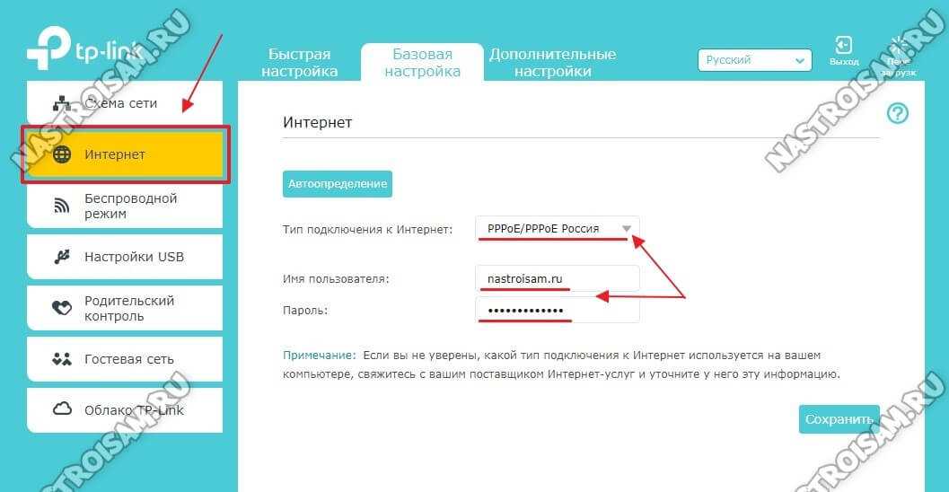 Попробовать настроить Интернет-подключение на роутере не сложно. Достаточно зайти в его веб-конфигуратор и открыть раздел настроек Интернет. Для примера возьмём роутер TP-Link Archer,