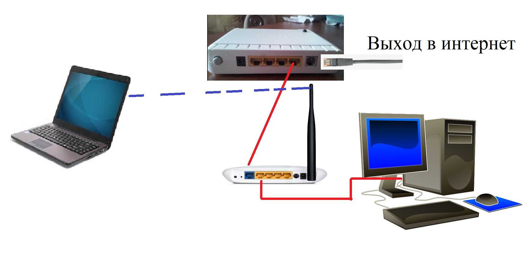 Ситуация такая. Есть ПК года выпуска где-то до 2004, на нём стоит XP и ничего новее ему уже не осилить. И есть ноутбук. На нём стоит Windows 10. Обе этих машины имеют доступ в интернет по схеме, которую я изобразил в таком незамысловатом виде (см. рисунок).