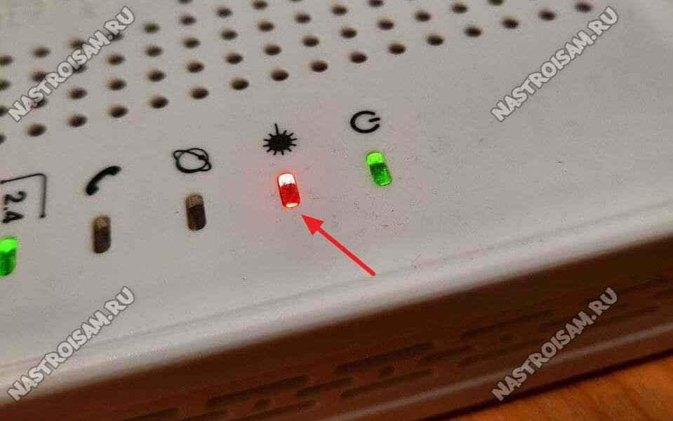Если у Вас PON-терминал, то там при возникновении проблем на оптической линии будет так же гореть красным лампочка LOS.