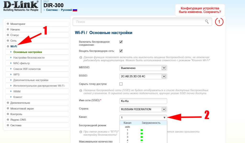 В появившемся окне выберите раздел «WiFi» или «Беспроводная сеть». В основных настройках напротив строки «Канал» выберите любой другой канал. Клацните «Применить».