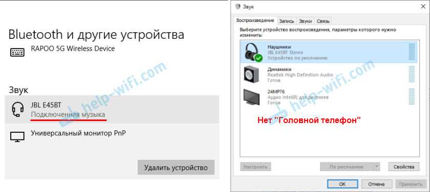После того как мы отключили Bluetooth службу «Беспроводная телефонная связь», Windows 10 не будет использовать микрофон на наушниках. Она вообще не будет его видеть. Как я уже писал выше, будет полностью отключен «Головной телефон».