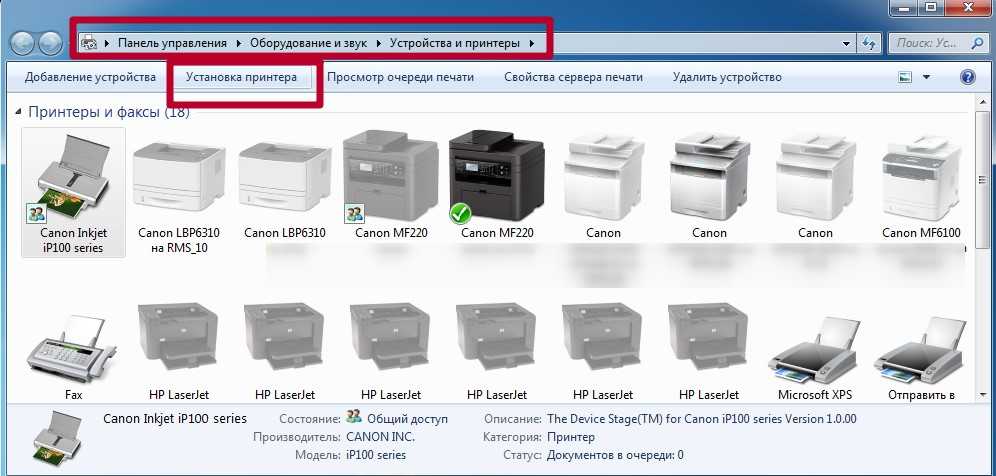 В командную строку, запустив ее через Windows+R, ведите «control printers». Сверху в панели кликните на «Установка».