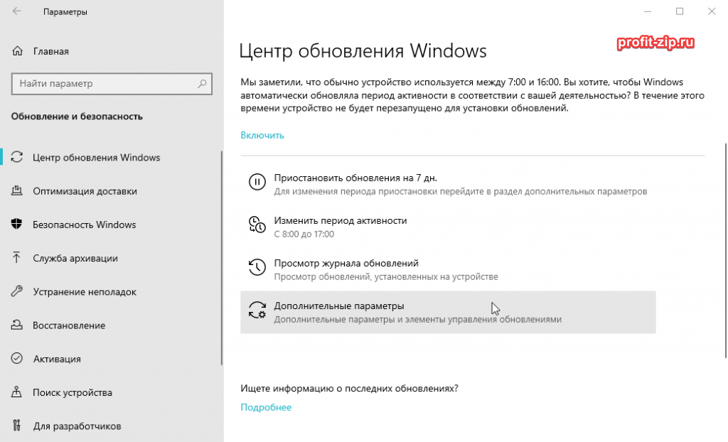 В данном разделе Вы можете приостановить скачивание обновлений до определённой даты (максимум на 35 дней).