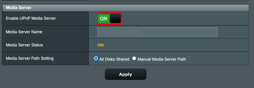 Включите UPnP медиасервер — поставьте выключатель в положение (по умолчанию стоит положение ).