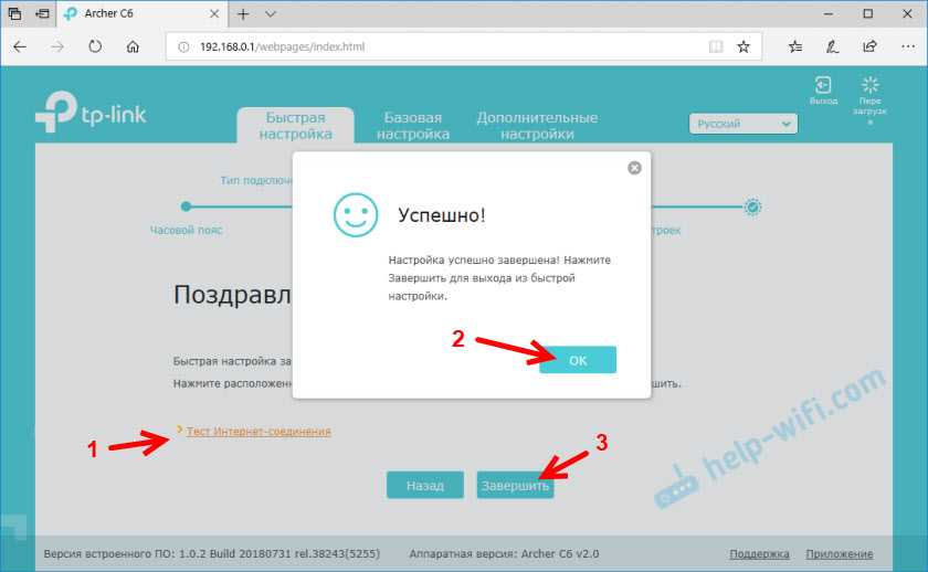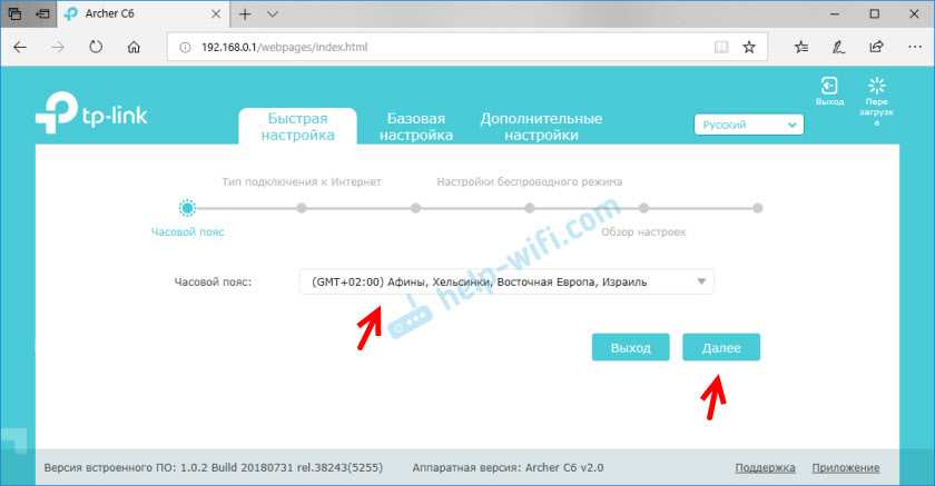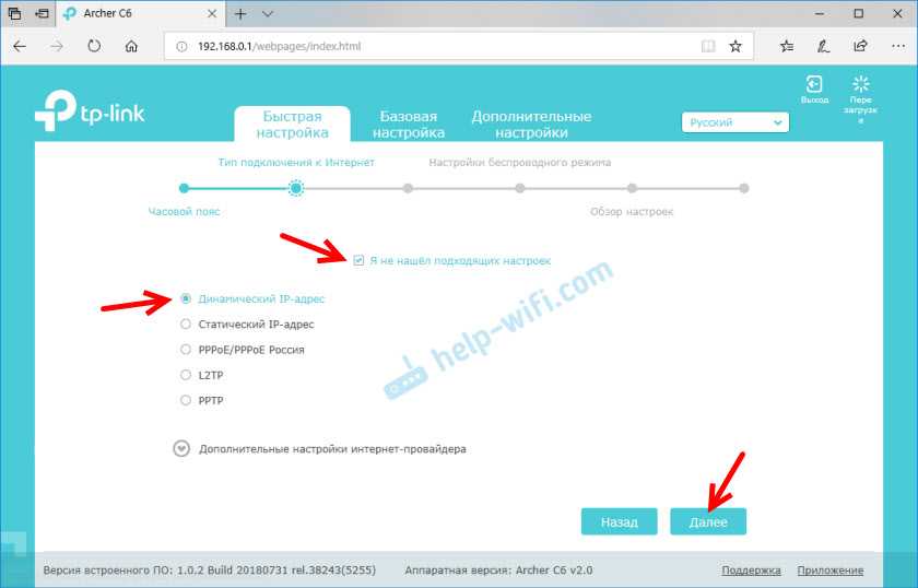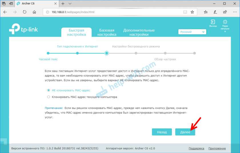 После авторизации будет автоматически запущен специальный скрипт, называемый «Быстрая настройка». Он позволит быстро настроить Archer C6 на подключение к Интернету даже тем, что впервые сталкивается с подобной операцией.