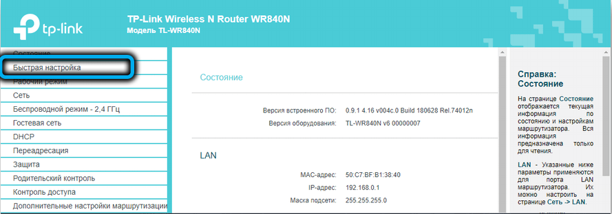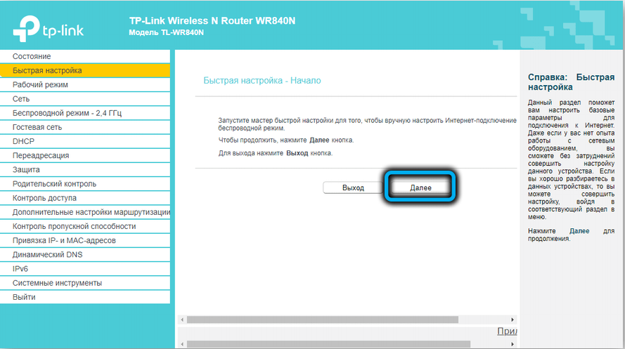 После входа в веб-интерфейс появится стартовое окно, в котором нужно нажать кнопку «Быстрая настройка».