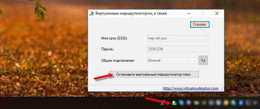 Чтобы остановить раздачу, нужно открыть программу Virtual Router Plus (нажав на иконку в трее) и нажать на кнопку “Остановить виртуальный маршрутизатор плюс”.