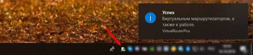 Если все Ok, то программа “Виртуальный маршрутизатор” спрячется в трее и появится уведомление, что раздача успешно запущена (с нереально плохим переводом).