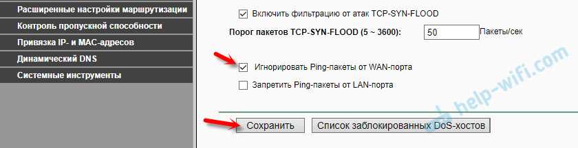 Я думаю, есть смысл еще попробовать включить на этой же странице функцию: «Игнорировать Ping-пакеты от WAN-порта».