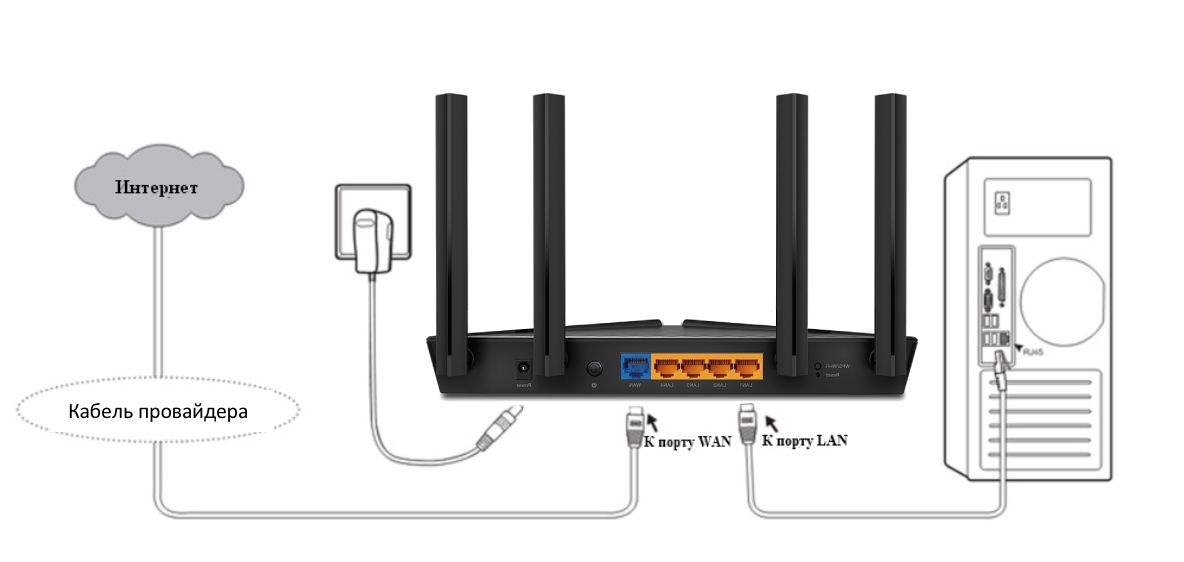 3 Шаг: Подключение Маршрутизатор должен быть подключен через Ethernet кабель к вашему компьютеру как это показано на рисунке ниже: