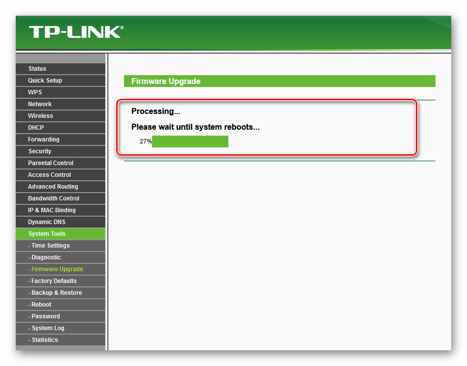 Теперь Вам остаётся нажать кнопку «Обновить» чтобы было запущено обновление прошивки роутера TP-Link. Вам останется только ждать: