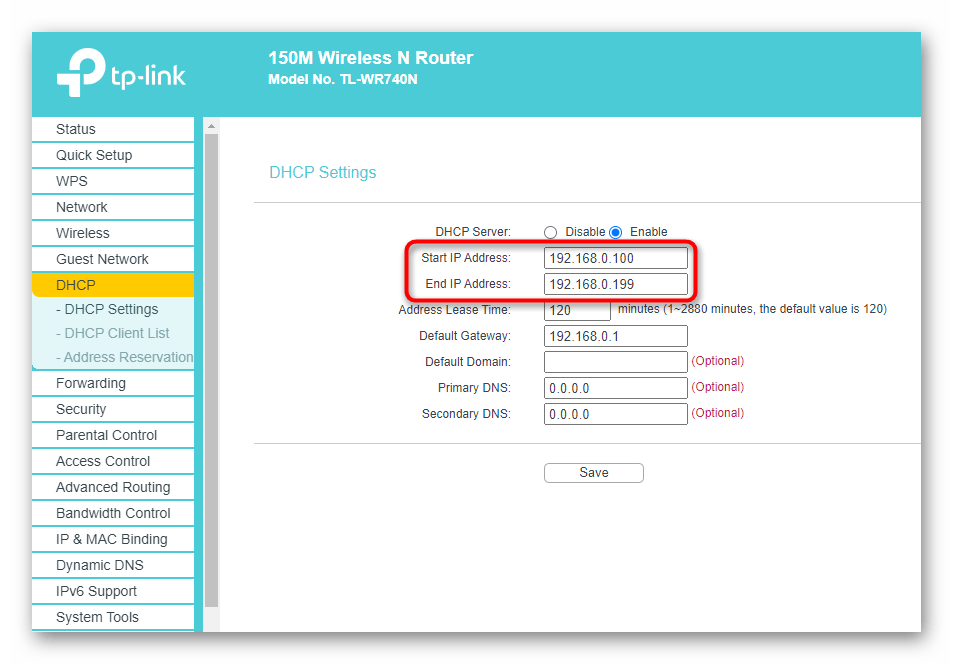 Способ 5: Проверка DHCP-сервера в настройках роутера