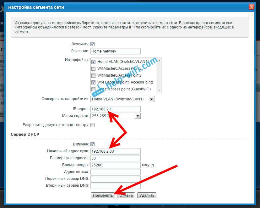 Смените подсеть, как у меня на скриншоте ниже (просто замените цифру 1 на 2) , и нажмите кнопку Применить.