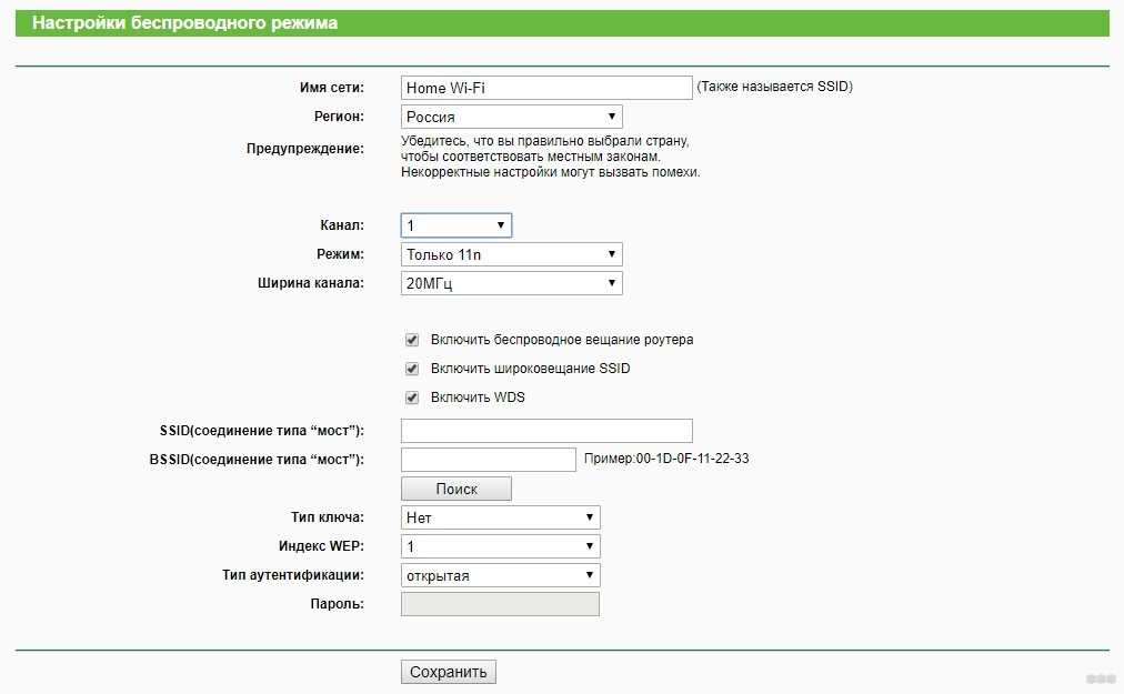 - На основном роутере должна быть создана точка Wi-Fi с открытым SSID, установленным паролем и способом аутентификации WPA Также в обязательном порядке канал укажите отличный от «Авто» (то есть 1,2 или 3).