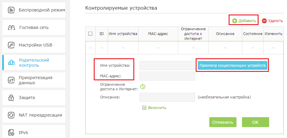 Добавление устройства, для которого нужно заблокировать доступ к соцсетям