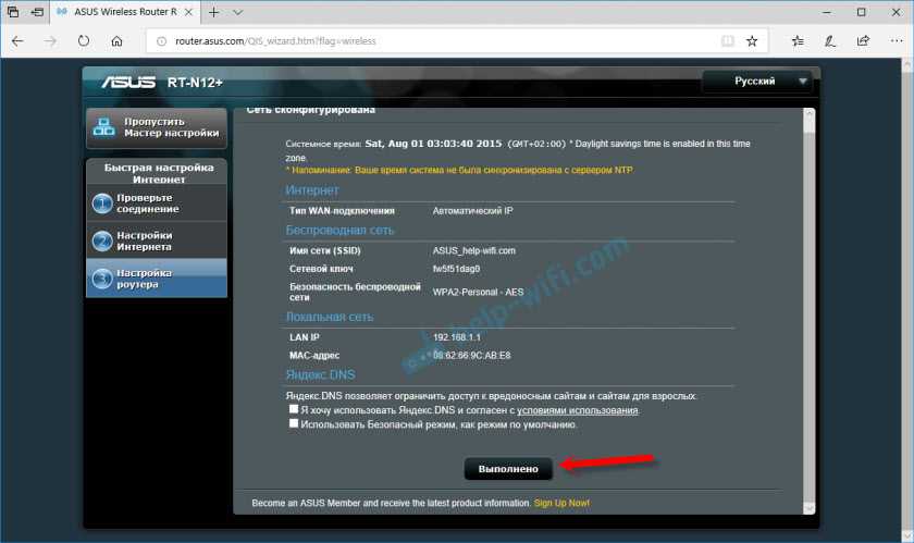На этом настройка wifi роутера ASUS RT-N11P завершена — можно пользоваться беспроводной сетью и выходить через нее в интернет.